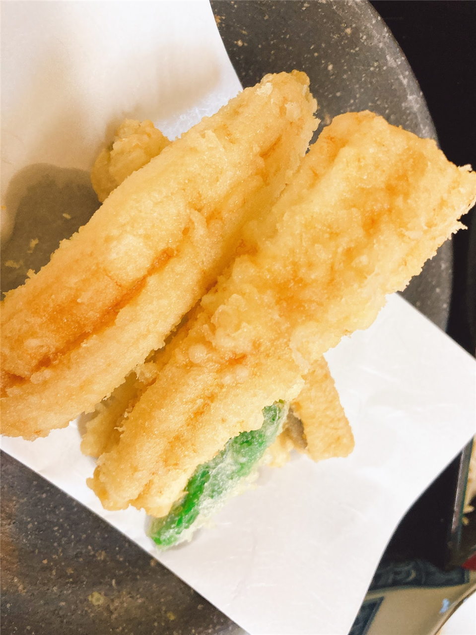 ぷりぷりの海老7尾を太白ごま油で揚げてます