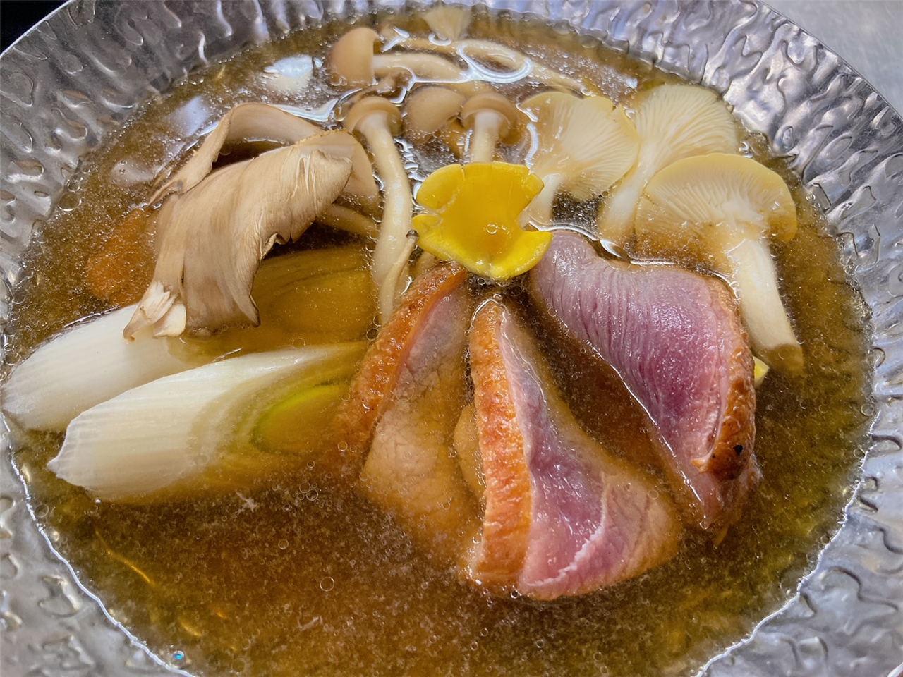 鴨南蛮 サミットで使用、あいち鴨を生産者から取り寄せた当店オリジナルな品 うま味たっぷり! 2300円 大盛2600円 鴨はヘルシーでお勧めです